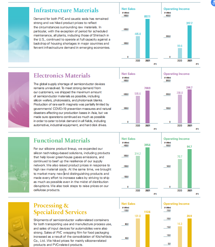 因此目前的信越化学,核心业务仍有很不错的发展势头,而占比较小的业务,也表现的非常平稳。
