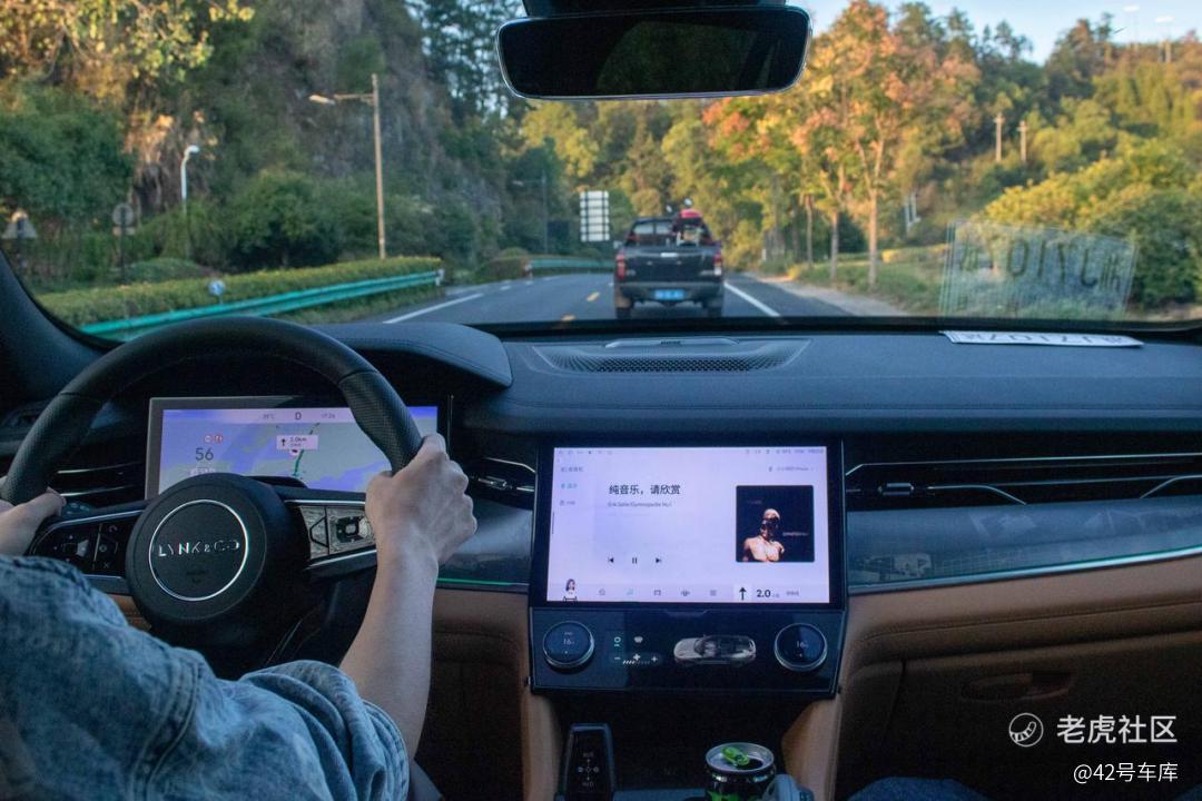 本次的试驾车型辅助驾驶功能还在调试中,所以我们也没有过多的感受。不过我们此前体验了使用相同方案的领克 01 EM-P,这套系统的 LCC 车道保持表现不错,但是跟车加减速的表现还需要再打磨。
