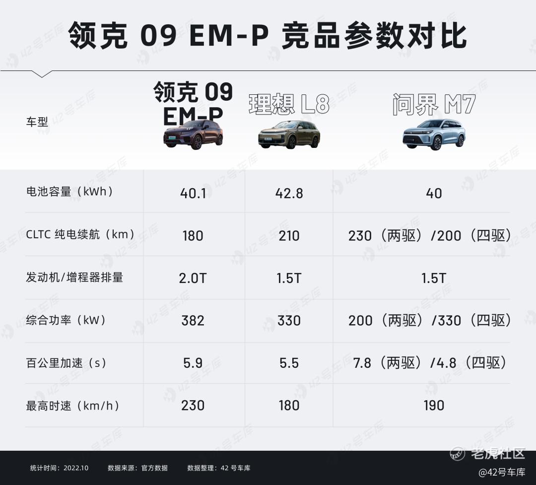 综合来看,不论是在动力性上还是在纯电续航上,领克 09 EM-P 都拥有和竞争对手一决高下的资本: