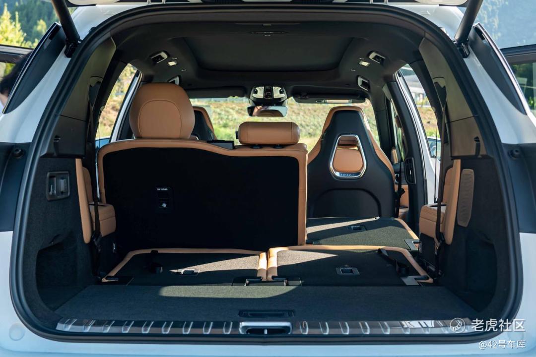 不过领克 09 EM-P 还是尽力提升了第三排乘客的舒适性。USB 充电接口、空调出风口和音响喇叭都在,短途乘坐没有问题。领克 09 EM-P 的后备箱可以支持放倒 2—3 排来进行拓展,并且放倒后形成的空间接近纯平。