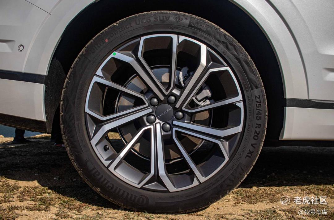 20 寸的轮毂在这个尺寸的车型上显的不够舒展。不过马牌 UC6 的 275 mm 轮胎足够宽,这也为操控性和弯道极限提供了正面帮助。