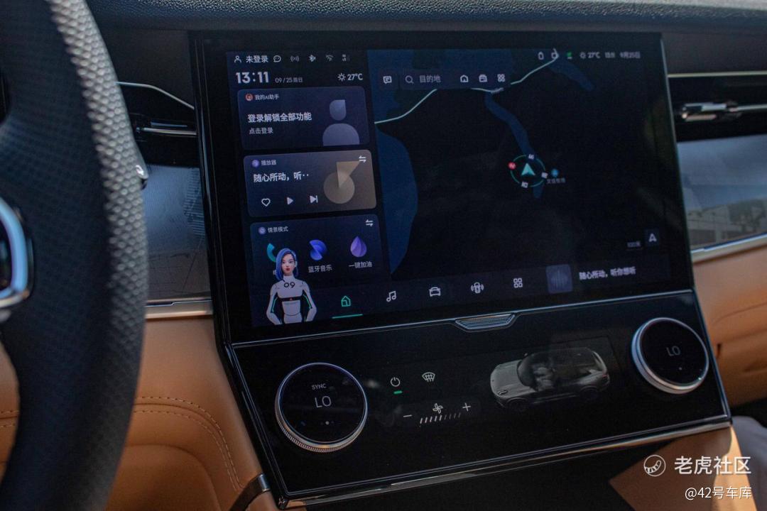 不过其他的界面控制都有了长足的进步,各个功能分区逻辑清楚,从上往下滑也可以快速进入快捷操作菜单栏。而且领克 09 EM-P 的语音识别率很高,四音区的麦克风可以识别不同座位乘客的指令。