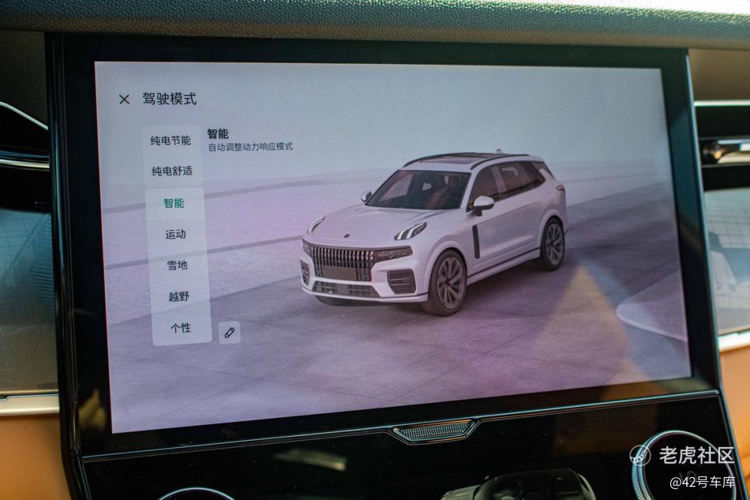 领克 09 EM-P 拥有「越野模式」,在这种模式下,发动机将默认处于启动状态,随时准备处理大动力请求的时刻出现。在这个模式下,油门的前段响应会稍微放缓,在这种需要细腻控制动力输出的场景下十分舒服。