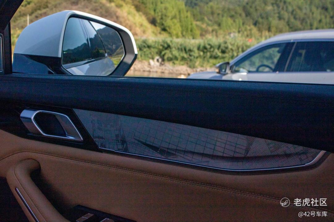 车身侧面的鲨鱼鳍装饰是点睛之笔。豪华感的营造不是一处细节优秀的功劳,这样的点睛之笔还有很多:比如侧窗「Flushdoor」工艺让 A 柱与 D 柱之间的车窗与 B、C 柱处于同一纯平面的设计、圆角处理的伸缩式门把手等等。