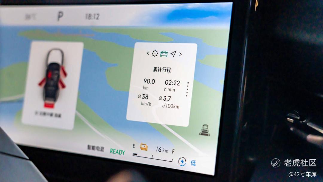 最后来看一眼道路驾驶的油耗表现:在累积行驶 90 km 后,续航里程从 61 km 降低至 16 km,平均油耗 3.7 L / 100 km。由于我们在驾驶过程中风格比较激进,也没有开启「智能保电」模式,所以这个得到的成绩也仅供参考。后续有机会我们也会在上海为大家带来标准化的测试成绩。
