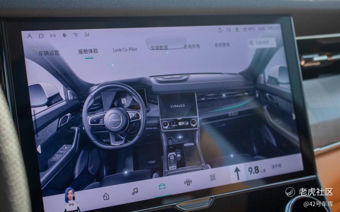 而 8155 芯片的加入让 12 英寸的大屏变得更加丝滑。领克 09 EM-P 还为车控设置加入了 3D 交互功能。在建模完成的中控界面中,你可以点击你想控制的地方,界面会跳转至对应的设置界面。不过这个功能还没有打磨得很好:车身建模上缺少明显的指示点,用户会不知道点击哪里。而在内饰的建模图中,虽然有对应的白点指示操作,但面积很小,操作起来也不太直观。