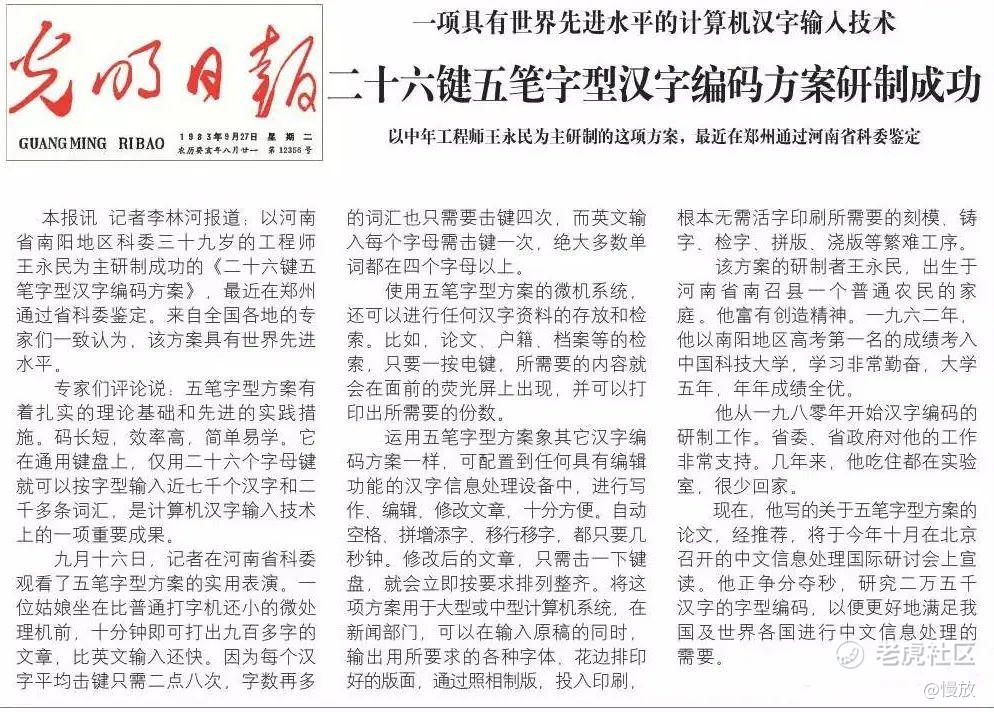 新华社曾评论:五笔输入法的意义不亚于活字印刷术,堪称新时代四大发明。