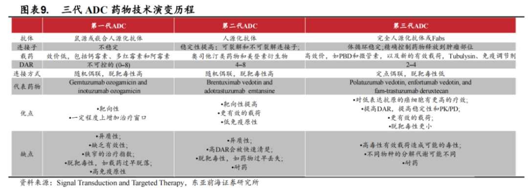 与肿瘤治疗方法不断演变一样,ADC药物经历了三代技术的更迭,包括抗体、连接子、细胞毒性载荷等构成要素以及DAR、偶联方式等都发生了改变,同时治疗效果也在不断提高。