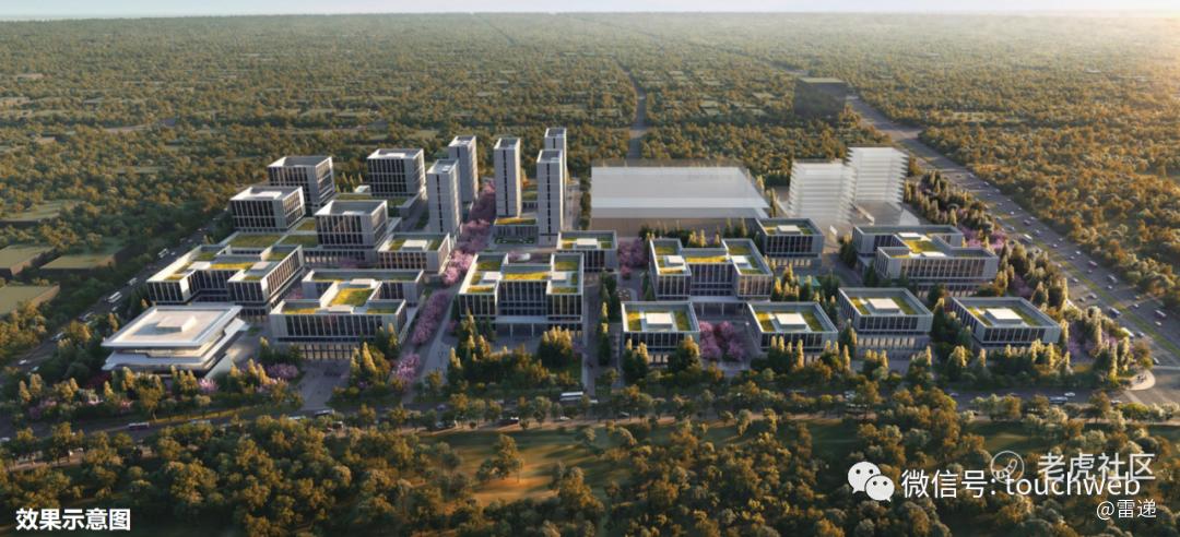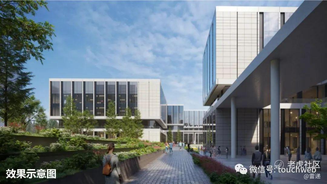 新园区由德国GMP建筑设计事务所及PAL设计事务所设计,规划主要由办公楼、公寓楼、食堂楼三大主体区域构成,还设有商业、运动场等配套设施,最大可容纳员工9000人。