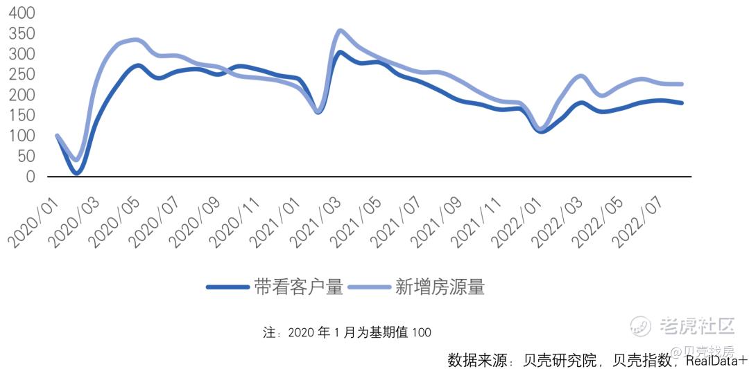 8月代表供求变化的带看客户量指数和新增房源指数也小幅下降,供求两端活跃度降低,预示着未来交易有下行的压力。