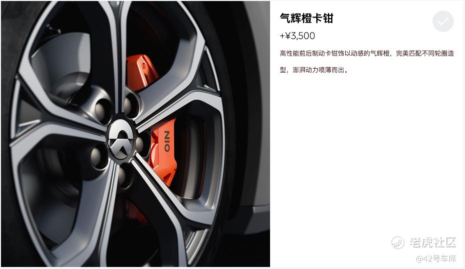 蔚来的轮毂卡钳可以选择橙色配色,对 ET5 来说更凸显了运动轿车的特性,选装价格为 3,500 元。
