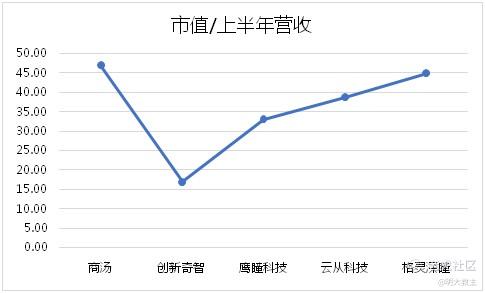 若选用P/S的逻辑,用9月2日收盘价折合人民币市值/上半年收入,创新奇智的估值水平是最低的。
