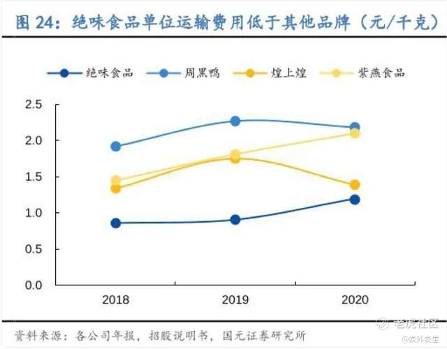 而在单位运输成本上,绝味是行业最低,周黑鸭是最高的。
