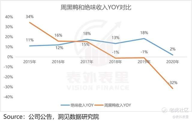 但就在所有人洋溢在估值兑现的喜悦里时,一个“大雷”霹了下来:2018年,周黑鸭的收入增速,突然转负。