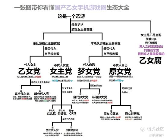 总体来看,其实乙女游戏中细分的玩家类型大概有“乙女党”、“女主党”、“梦女党”、“原女党”等,具体可以通过下图简要了解。