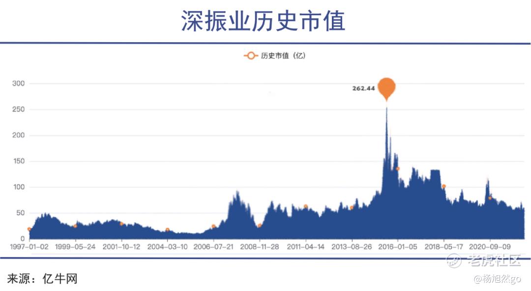 5. 当所有人都在以八卦的眼光审视整件事情时,我们发现深振业这家公司本身的发展历程也颇值得玩味:一家上世纪80年代就已经成立的房产公司,坐享深圳特区几十年的发展红利,扎根深圳辐射全国,市值却一直在原地踏步,1998年时50亿市值,到了2022年仍然是50亿市值。