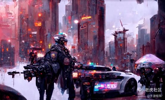 另外,虽然DD可以画出精美的场景画,但经不起细看,画面中的抽象元素依然无法完全忽视,这样的缺陷在人物画中尤为突出。当DD被要求画出一张“有行人的赛博朋克城市街头”时,我们能看到图片里虽然确实画出了一个赛博朋克风格的都市,但可以被看成“行人”的只有一团意味不明的线条,抽象得无法辨认。