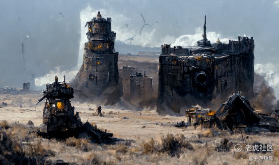 可以看出,DD的绘画具有更高的辨识度,能良好的表现结构和构图,看起来多少像一张正正经经的艺术图。而且,DD对使用者的理解也更加深刻,不同于需要在特定的风格中选择的Wombo Dream,DD只需要使用者在输入栏中加入自己想要的画风、流派或者艺术家风格,就能进行创作。例如,要求DD创作一幅关于“废土中的堡垒”的Artstaion概念艺术图,AI提交的便是一张与描述基本相符的清晰画面。