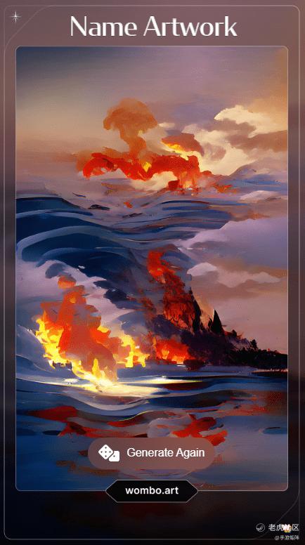 或许正如其名,Wombo Dream也是AI绘画“梦开始的地方”,它不仅开创了凭空画图的先例,成品质量也有了提升,至少已经摸到了“绘画作品”这个概念的边缘。让AI画一幅关于“火与水”的图片,其成品可谓颇有神韵。