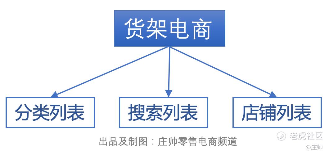 从上图可以出,货架电商的流量主要分配给三类商品: 分类列表、搜索列表和店铺列表。 这也是货架电商平台的用户行为和系统架构决定的。
