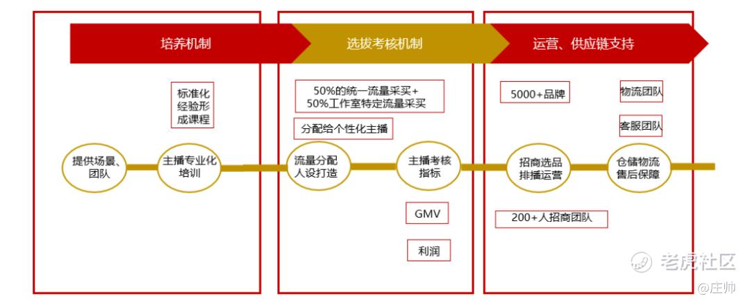 无论是签约主播、全职主播、艺人主播的管理,还是选品、招商或采购、客服等团队的管理,都需要能够将不同的角色通过一套适合直播电商模式的企业文化融入到一个组织里,同时需要建立相应的流程、激励机制、淘汰机制和系统化的管理能力。