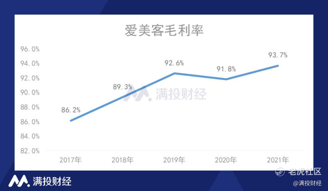 医美行业的毛利率普遍较高,爱美客的毛利率也处在较高水平,2019年至2021年,公司的毛利率分别为92.6%、91.8%和93.7%。