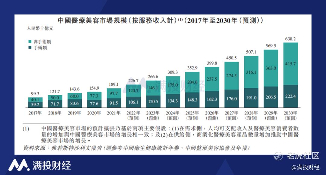 斯特沙利文报告,按服务收入计,中国医疗美容市场由2017年的人民币993亿元增至2021年的人民币1,891亿元,年复合增长率为17.5%,高于全球增速。