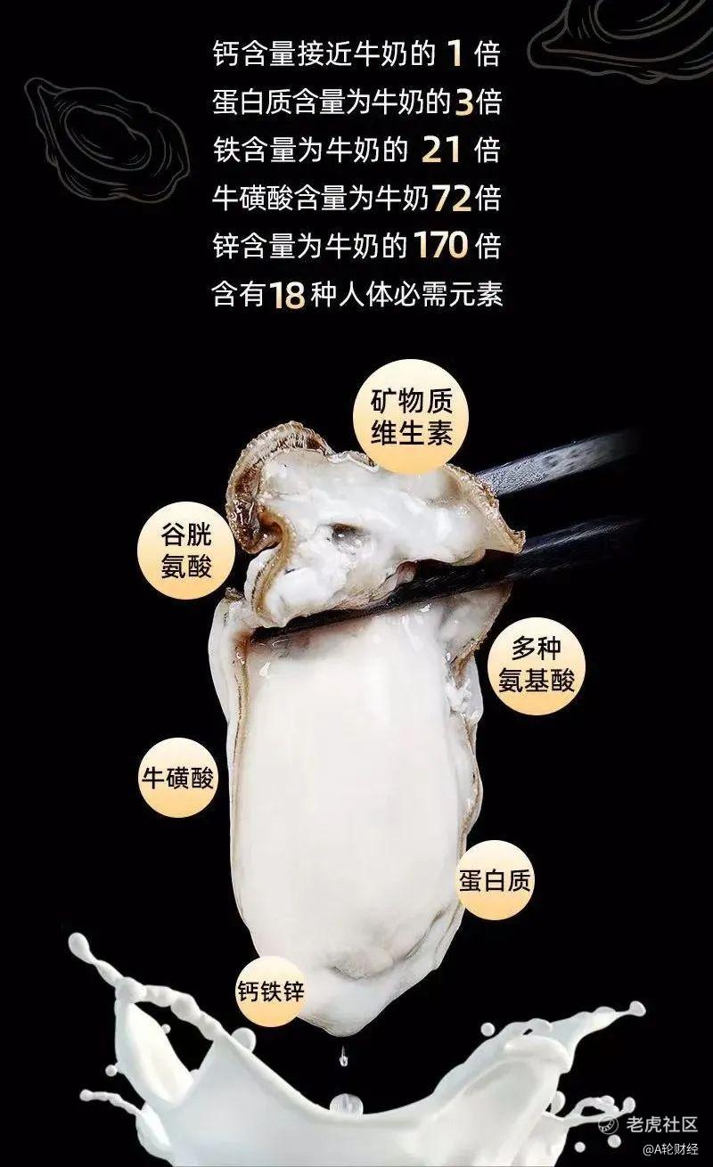 听起来有点夸张,但表达的意思却很清楚,生蚝的营养价值极高,低脂高蛋白,锌含量是牛奶的170倍,男女都适合食用。
