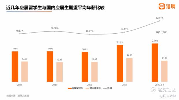 应届留学生期望平均年薪连年高出国内应届生,二者薪资差幅超48%