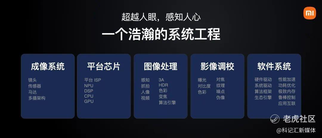 要实现这一理念,需要庞大、完备的技术体系支撑,这是一个浩瀚的系统工程。因此,小米将对成像系统、平台芯片、图像处理、影像调校、软件系统等核心领域进行系统性技术升级。