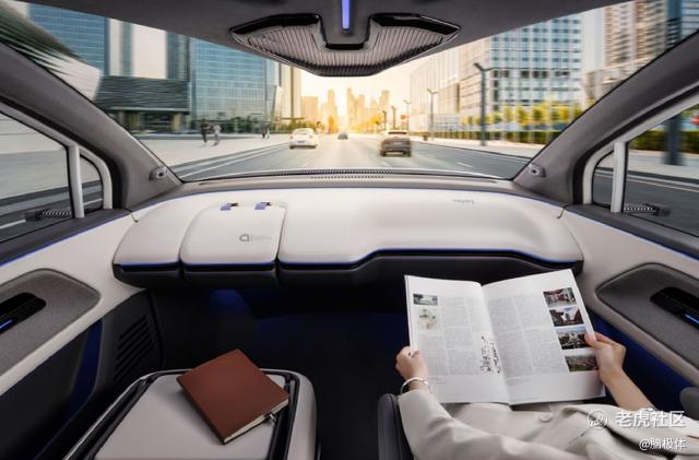 由于面向乘客,Apollo从“打车的人”角度出发,舍弃了原针对司机的豪华配置,如车机系统、前排超大屏幕等,这也大幅节约了车辆成本。取而代之的,是车内的“百变智能空间”,前排可根据不同出行场景配置座椅、售卖机、办公桌、游戏机等,满足乘客办公、娱乐等多元需求。后排超大空间、独立座椅以及智能交互系统后移设计,让坐车真正舒服和享受。