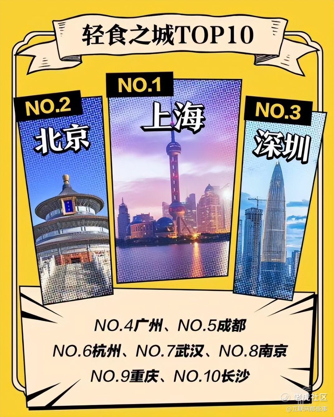 根据饿了么数据显示,在轻食消费金额Top10的城市中,上海、北京、深圳位列前三。