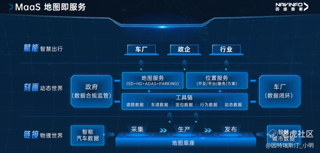 与传统地图单纯的数据管理不同,智能化接受的海量数据无法在终端处理,必然上云。“传统/高精地图+合规平台”构成了智云业务,这种“平台搭建+数据服务”的SaaS商业模式,被称为MaaS( Map as a Service )。