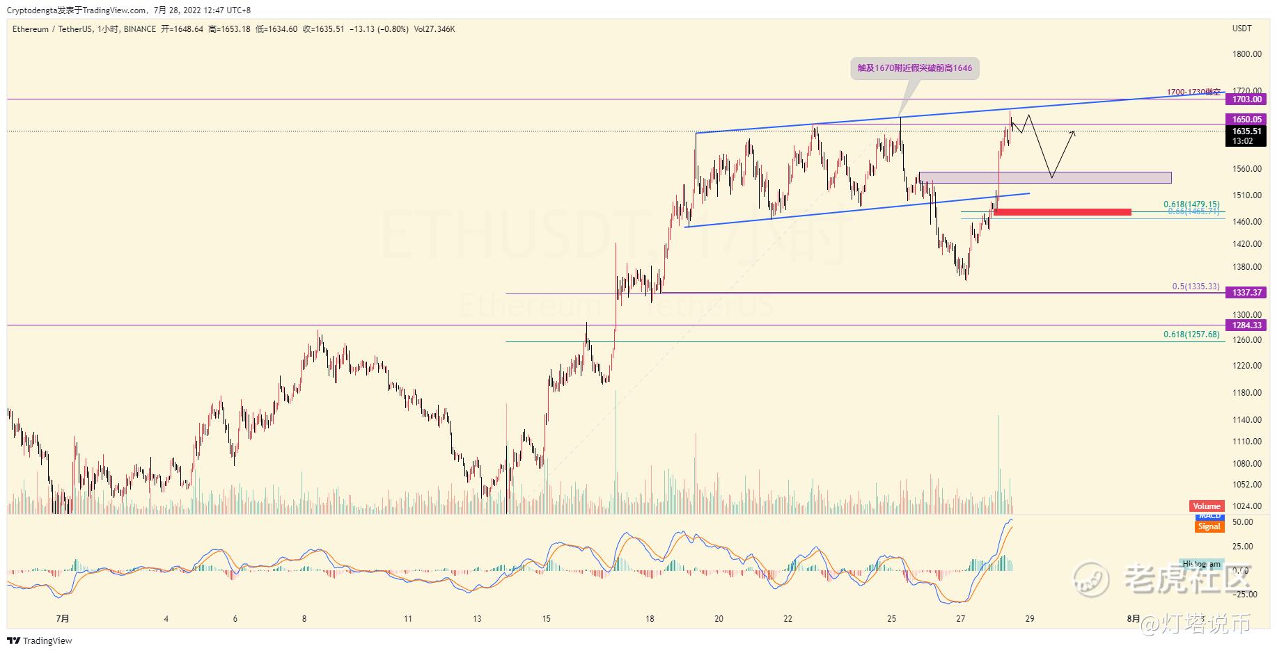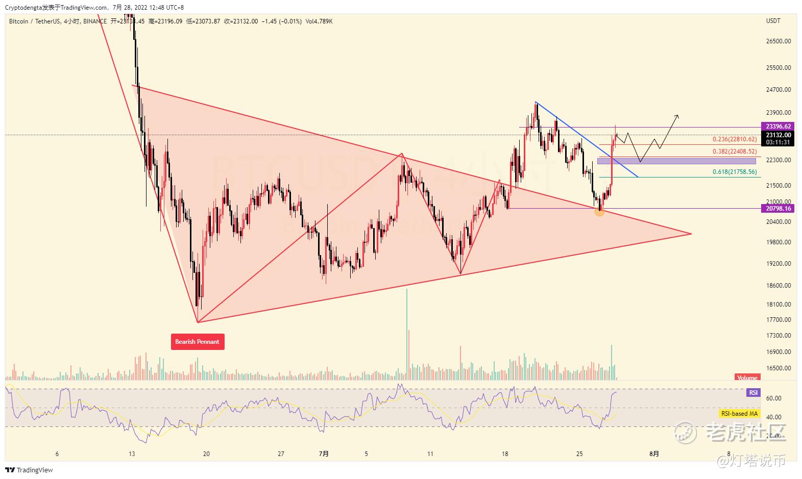 短期需要留意消息面带动的反弹超买,留意行情短期的延续性回撤震仓, 下方支撑关注22400附近,分水岭关注21700,跌破继续颓势,保持22400支撑反弹新高,行情健康上涨