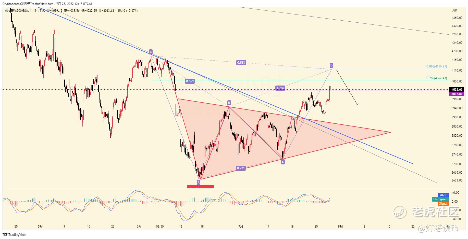 美股突破4000关口,回补了前期跳空缺口,比特币底部反弹突破23000,以太坊突破新高到1680附近