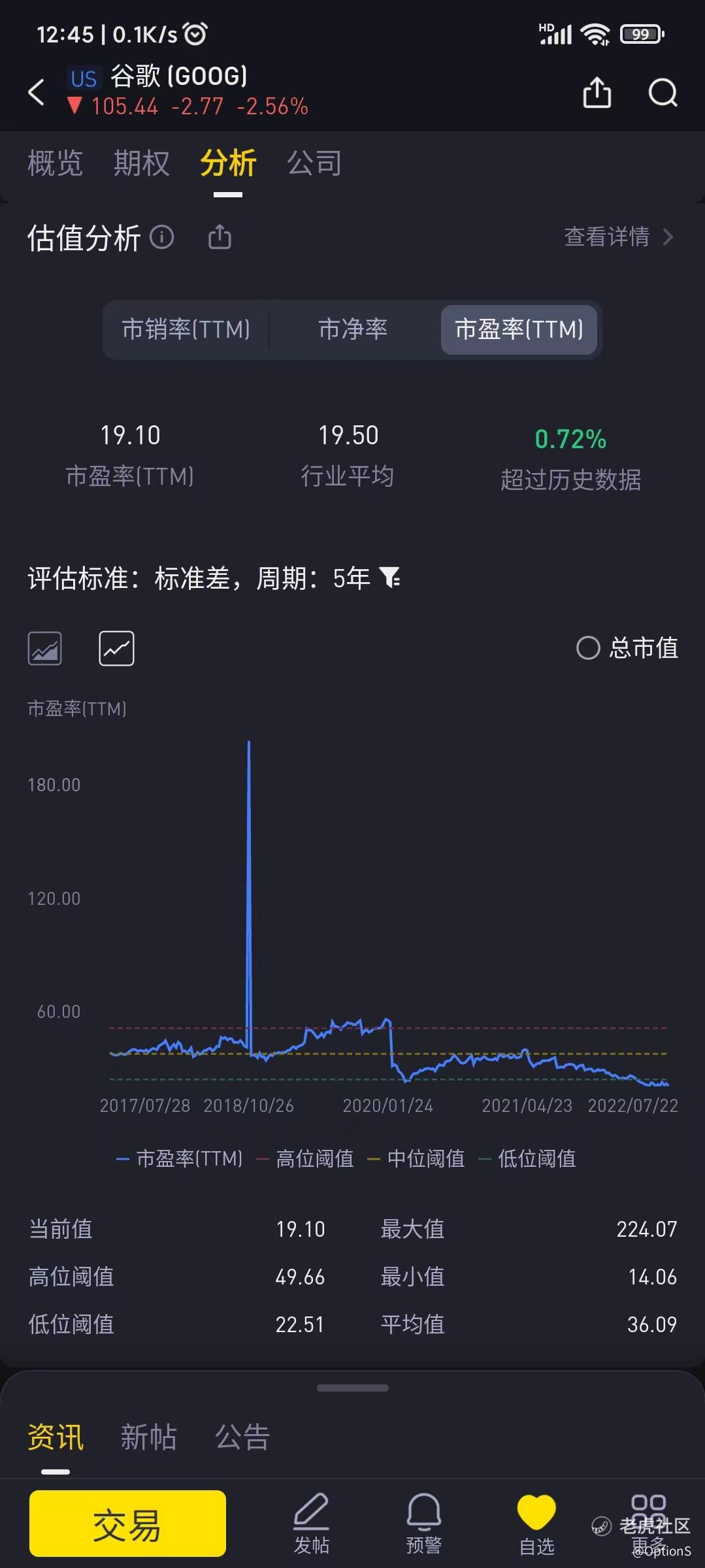 要熟练使用老虎来做基本面分析,我常看这个地方:个股页-分析-估值分析-市盈率