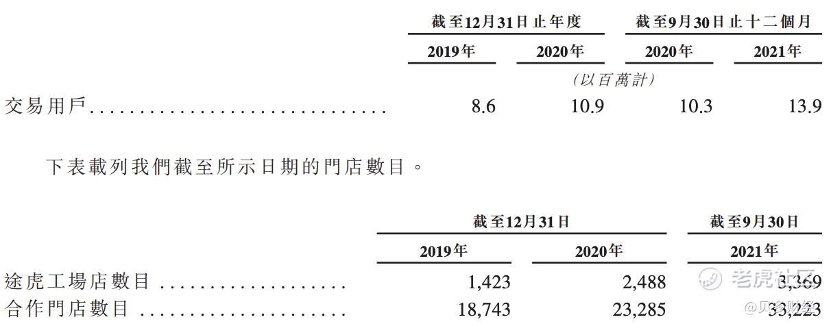 截至2021年9月30日,途虎养车的旗舰应用程序“途虎养车”和在线界面拥有7280万名注册用户。于截至2021年9月30日止过往12个月,途虎养车拥有1390万名交易用户,其中月活跃用户于2021年9月达到1000万名,同比增长35.6%。