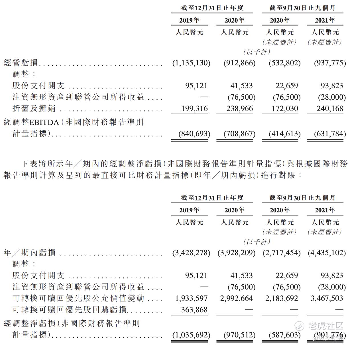 2019年、2020年以及2021年前三季度,途虎养车分别录得净亏损34.28亿元、39.28亿元和44.35亿元,累计接近120亿元。而在非国际财务报告准则计量下,途虎养车的经调整净亏损分别为10.36亿元、9.71亿元和9.02亿元,合计约为29亿元。
