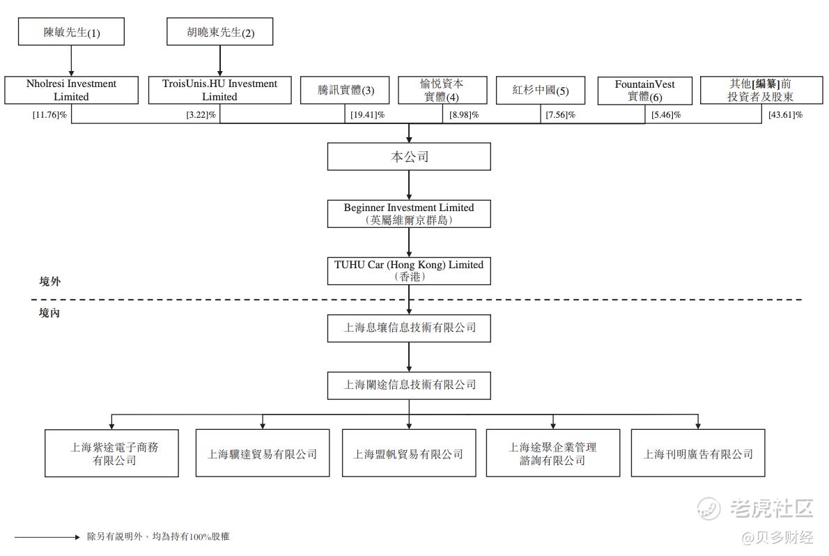 当前,上海阑途信息技术有限公司(途虎养车)的注册资本为60亿元,法定代表人为胡晓东,全资股东为上海息壤信息技术有限公司。穿透股权可知,该公司背后的股东为TUHU Car (Hong Kong) Limited。