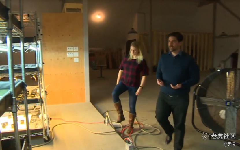 如图中可以看到,不远处的木质栅栏中放着数台比特币矿机,而置于左侧的蔬菜则由巨大风扇带来的热风维持着环境温度。