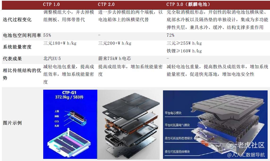对比各家CTP和CTC方案,宁德时代麒麟电池和特斯拉4680 CTC方案综合性能占优: