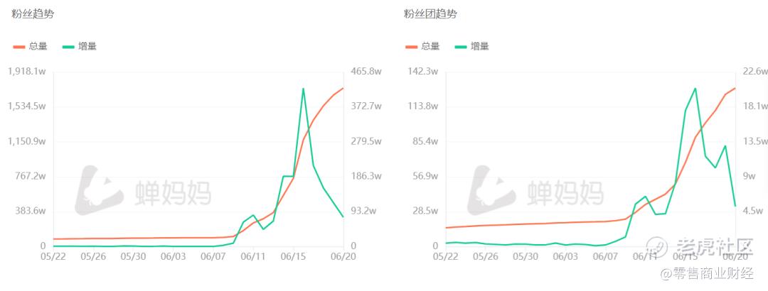 6月9日,东方甄选粉丝数量还在110万,6月16日下午两点左右,东方甄选粉丝总量突破1000万。直播间销售额也从6月9号的351.5万元,涨到了6月16日的6675万元。