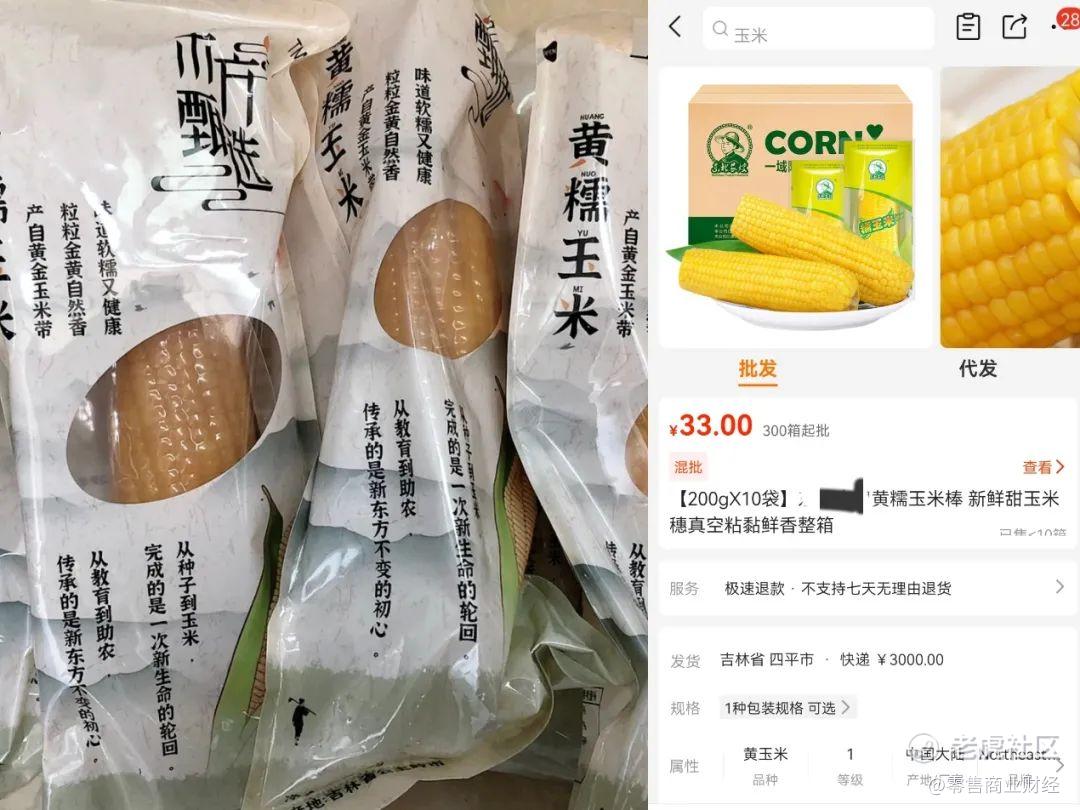 观察也能发现,目前东方甄选直播间主要销售的品类还是食品饮料、生鲜蔬果和图书为主,相比于其他售卖彩妆护肤、3C数码等商品的头部主播,客单价并不高,而通过自营品牌,能一定程度上解决客单价问题:之前被热议的“6元一根玉米”,代工厂家在1688上的价格是10根33元,虽有东方甄选玉米选品标准可能更高的原因,但其中不乏有为“情怀”支付的因素。