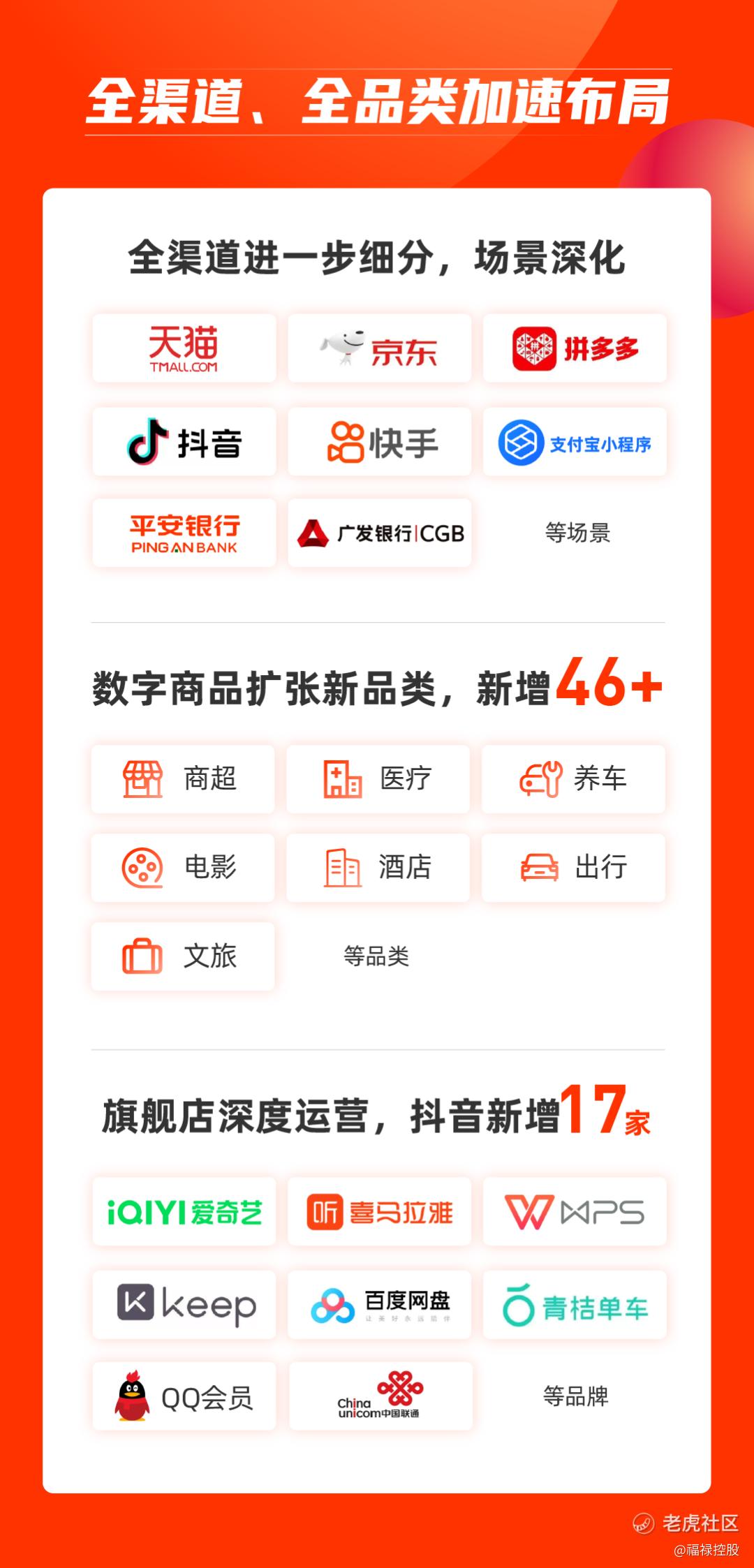 在数字商品的品类上,新增商超、医疗、养车、电影、酒店、出行、文旅等,并为更多品牌提供多平台多场景的代运营服务。