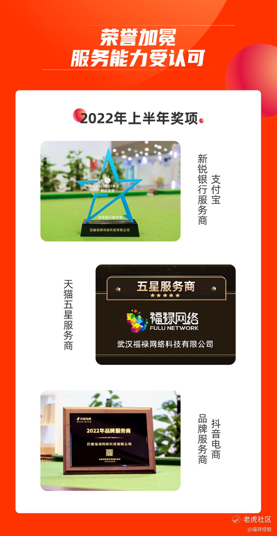 2022年上半年,福禄的服务能力也受到多方认可,荣获了天猫五星服务商、支付宝新锐银行服务商和抖音电商品牌服务商的荣誉。