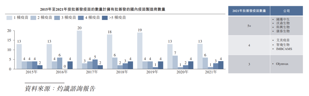根据灼识咨询的资料,截至最后实际可行日期,国家药监局总共向中国33家疫苗制造商或制造商集团授予45个生产许可证,其中只有27家在2021年有批签发记录。