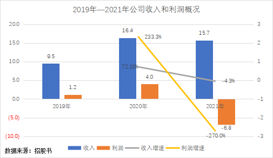 据招股书,2019年至2021年,公司收入分别为9.5亿元、16.4亿元及15.7亿元;公司录得净利润分别为1.2亿元及4.0亿元。2021年,公司亏损6.8亿元。该亏损净额主要因为公司该年股份报酬开支高达9.5亿元,研发开支由1.6亿元增至3.1亿元。