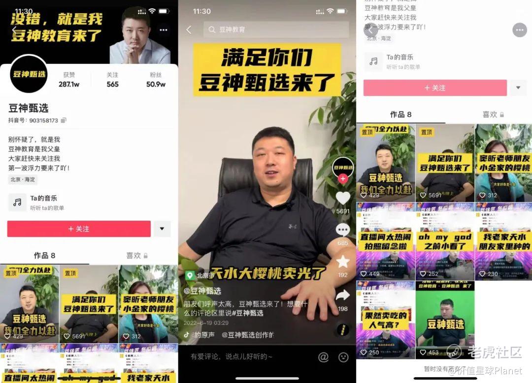 6月18日,豆神教育还推出了新账号“豆神甄选”。短短一周时间,该账号就已吸粉50万。目前该账号只发布了八条短视频,内容多来自于旗下其他账号的直播内容片段。