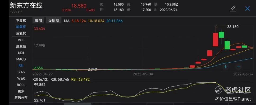 受双语直播带货“走红”影响,6月15日和6月16日两个交易日,新东方在线股价涨幅均超过50%。一周时间内,新东方在线股价涨幅近6倍,5月以来股价涨幅一度超过10倍。