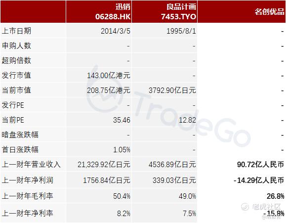本次选取的同行业对比公司为:无印良品(良品计画TYO: 7453)和迅销(06288.HK)
